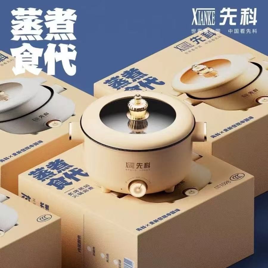 先科電気煮鍋二重蒸し器付き多機能蒸煮一体電気鍋家庭用寮学生電気鍋