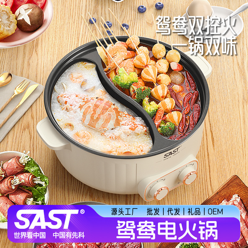 SASTオシドリ双制御電気鍋家庭用非粘着多機能一体鍋大容量電気煮鍋プレゼント卸売り