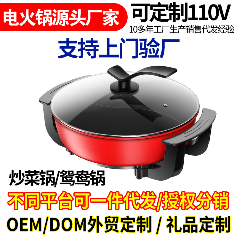 ドイツに輸出されたオリジナル電気鍋、一体型調理電気中華鍋、多機能調理鍋、蒸し、揚げ、焦げ付き防止電気調理鍋
