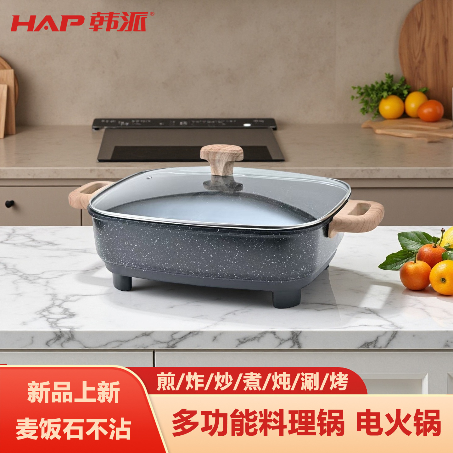 韓国多機能電気中華鍋電気鍋家庭用長方形電気鍋魚鍋ノンスティック鍋大容量オールインワン鍋