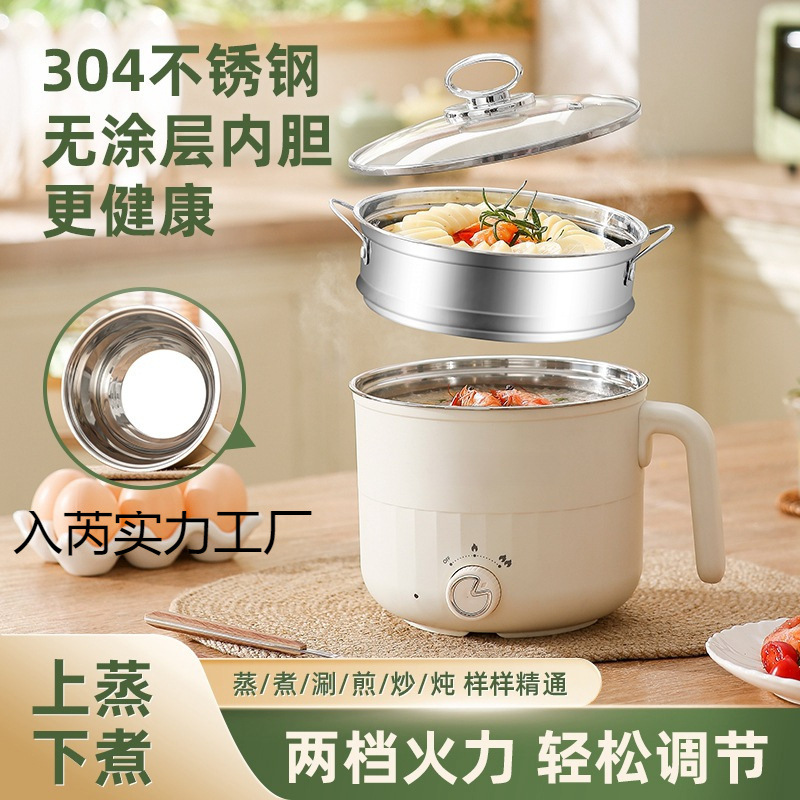 304 電気調理鍋ステンレス鋼ライナー家庭用学生寮寝室シングルミニ多機能蒸しと調理オールインワン鍋