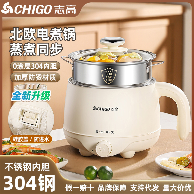 Chigo 304 ステンレス鋼電気調理鍋学生寮家庭用小型電気鍋電気鍋多機能電気鍋