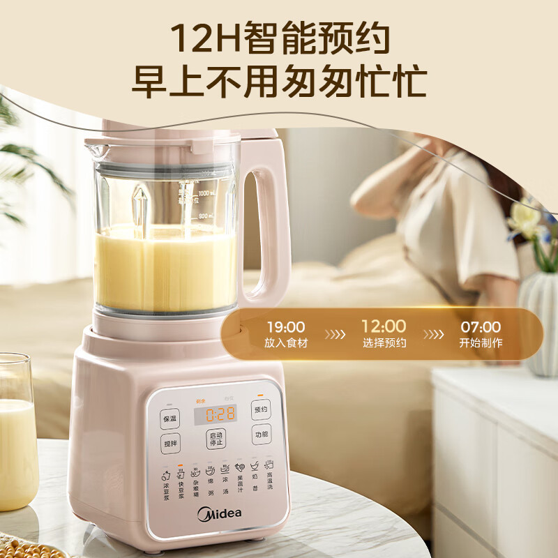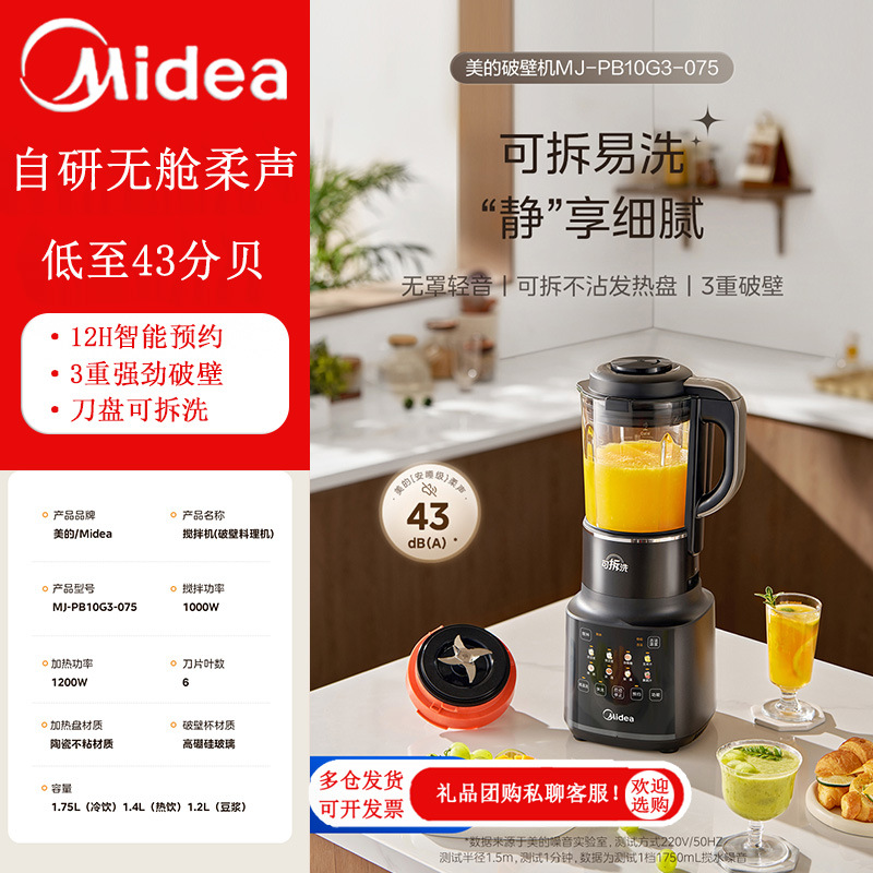 美的壁破壊機 8段階ノイズ低減低音加熱予約豆乳マシン取り外し可能で洗えるジューサー PB10G3-075