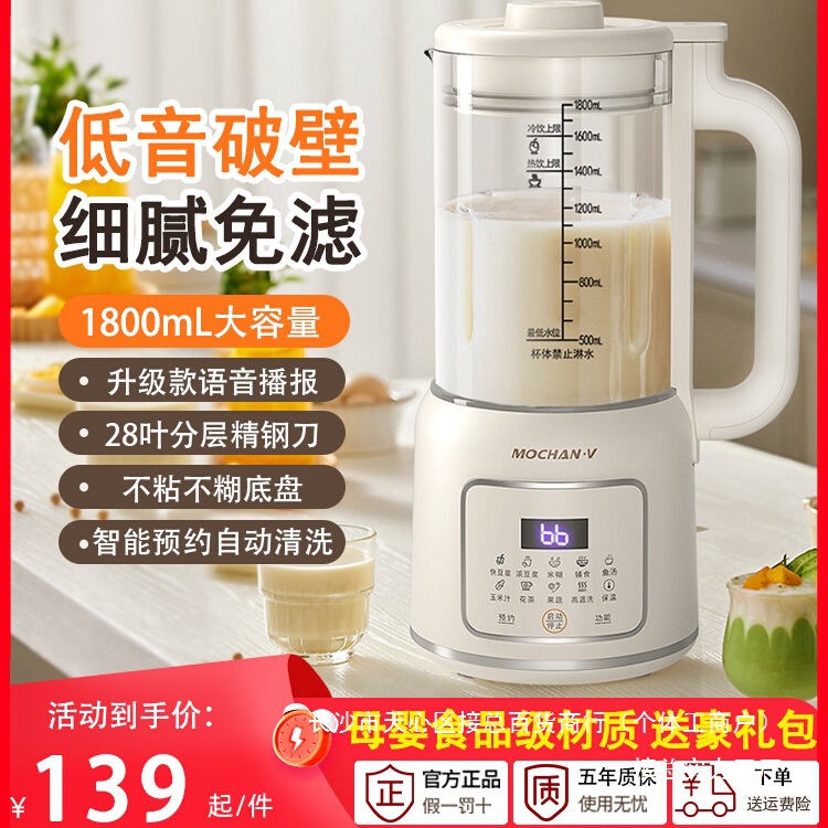 恵母多機能破壁機全自動音声知能予約静音豆乳機搾汁無ろ過補食機