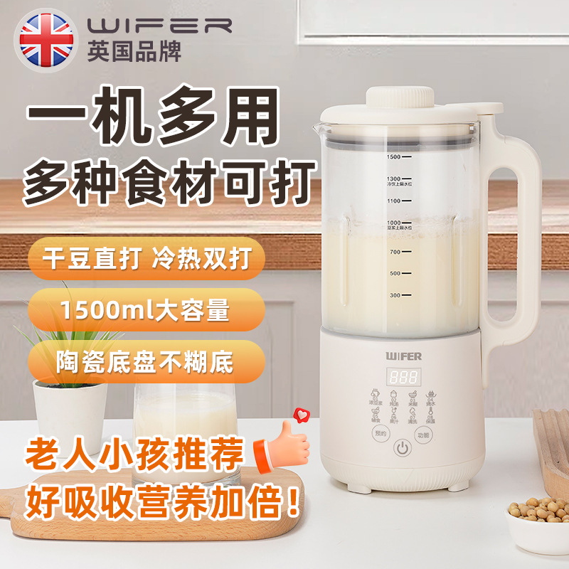 イギリス破壁加熱家庭用全自動無煮豆乳製造機多機能無滓ジューサー料理補助食機