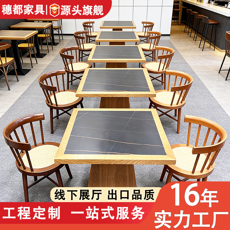 新中国式実木岩板カフェミルクティー店テーブルレストランハンバーガー店テーブル商談テーブル