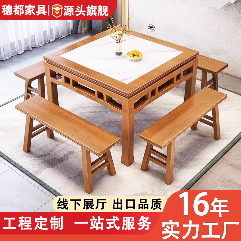 新中国式の実木岩板の長方形のテーブルの家庭用の古い農村の食事のテーブルのホテルのテーブルと椅子の組み合わせ