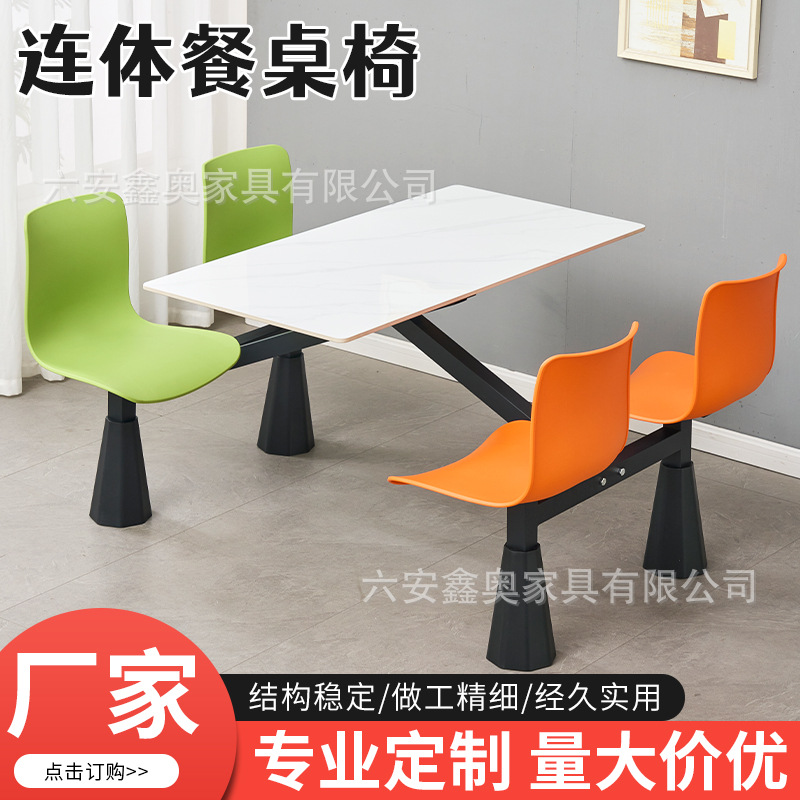 連体食堂食卓学校レストラン従業員ステンレス食堂軽食店四人六人ファストフードテーブルと椅子の組み合わせ
