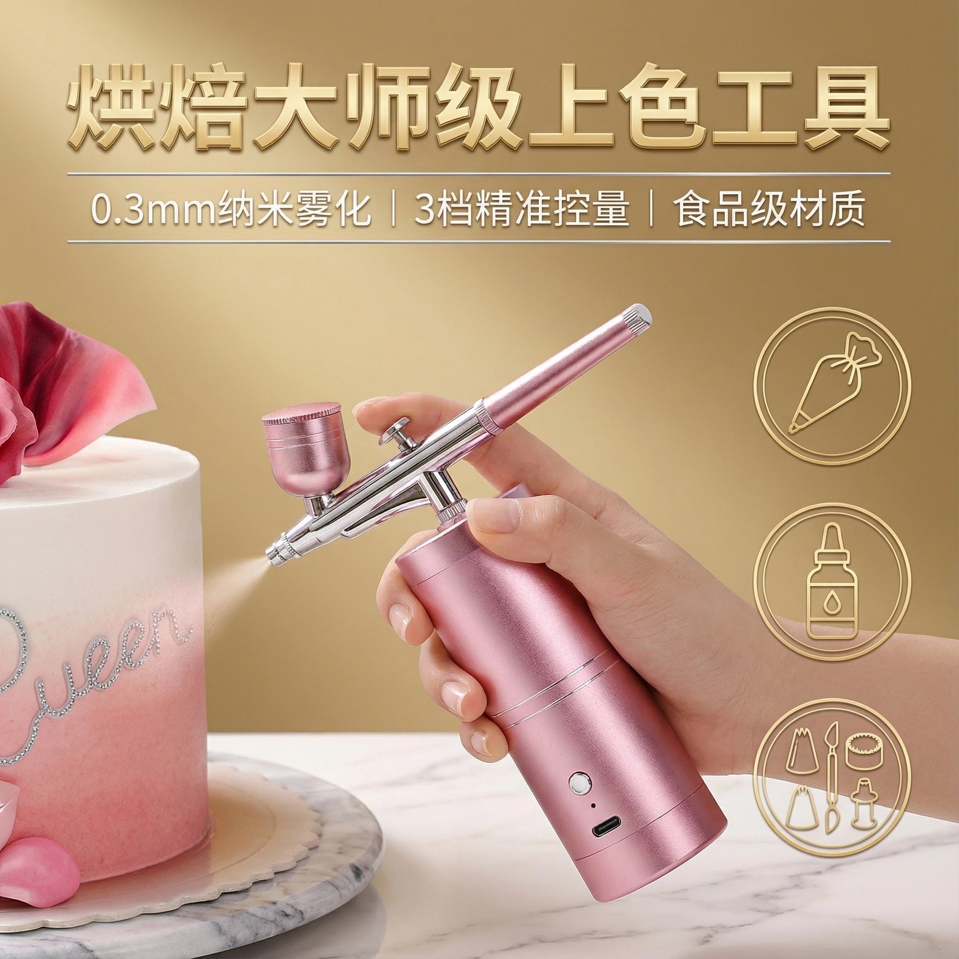 ケーキ着色用スプレーガン、桃の形をしたスプレーガン、家庭用電化製品、ベーキング用サンドブラスト機、手持ち式スプレーガン、模型用電動スプレーガン