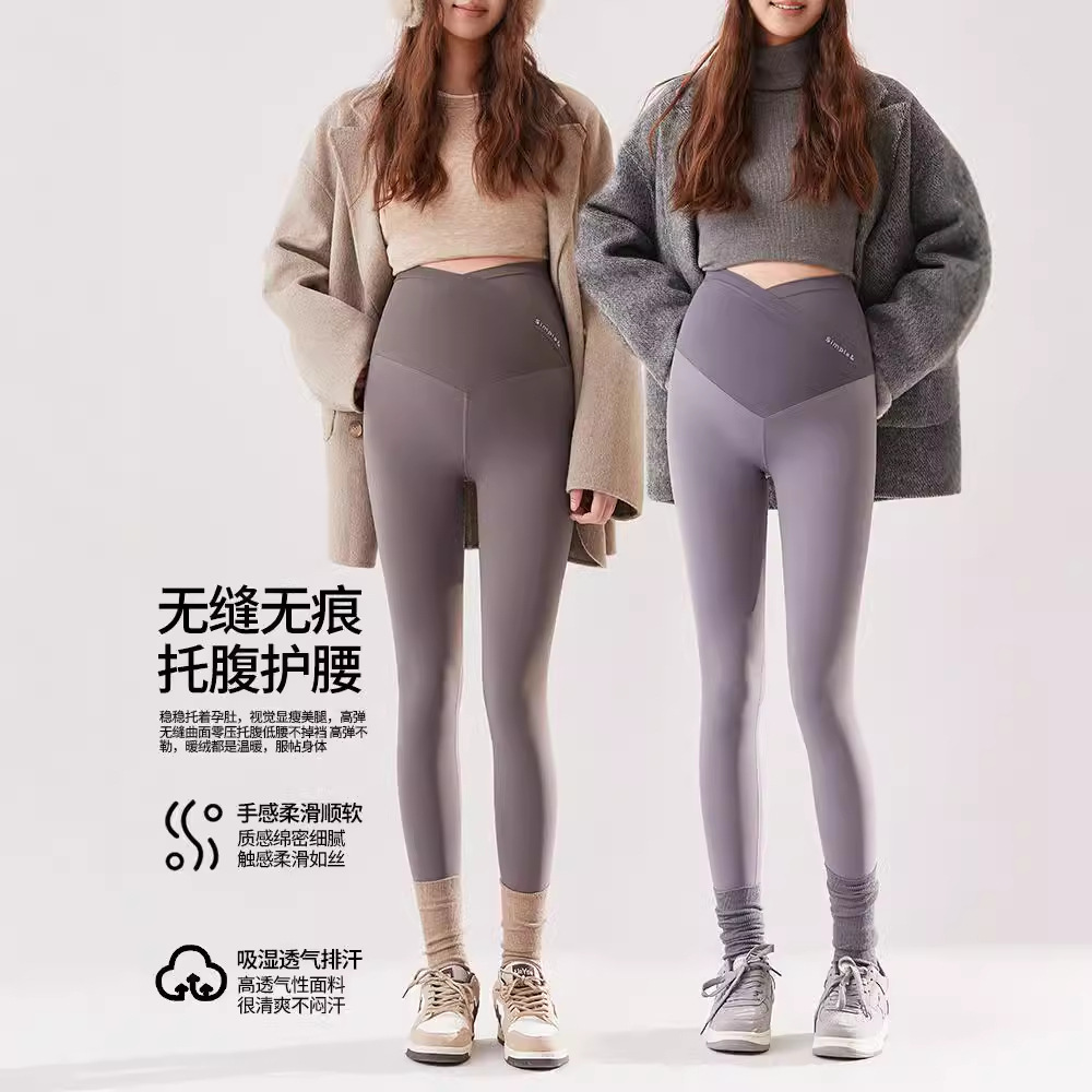 妊婦のレギンスの秋冬の新型のベルベットの厚いサメのズボンのヨガのズボンの保温のズボンの高弾の妊婦のズボンのレギンス