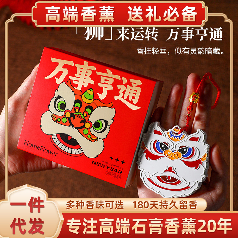 新年に目が覚めたライオンの招財香薫片車載拡香石膏精油礼箱ストラップお土産
