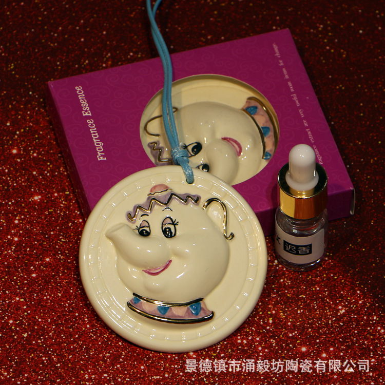 景徳鎮の純粋な手描きの描金の釉薬は彩色の車のタンスのペンダントの美人と野獣のティーポットのお茶の鍋の奥さんの香片を塗ります。