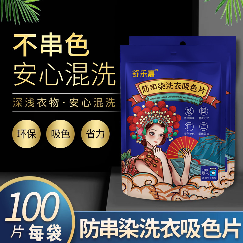 卸売り100枚袋入り使い捨てカラーシート洗濯防串染色母片家庭用混合洗濯物防串色