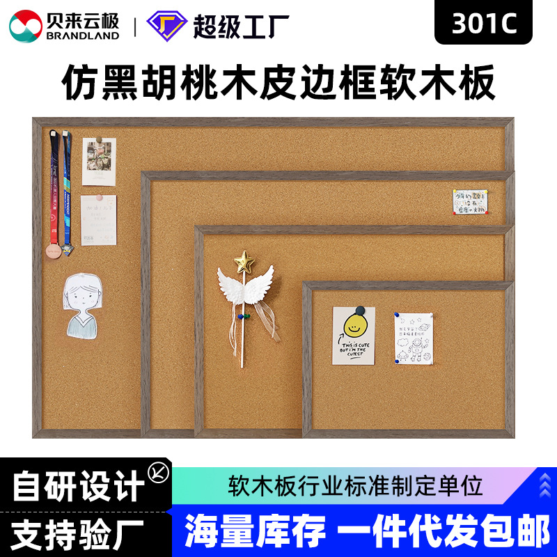 黒胡桃枠家庭用吊り式写真壁背景板展示板水松伝言告知insコルク板