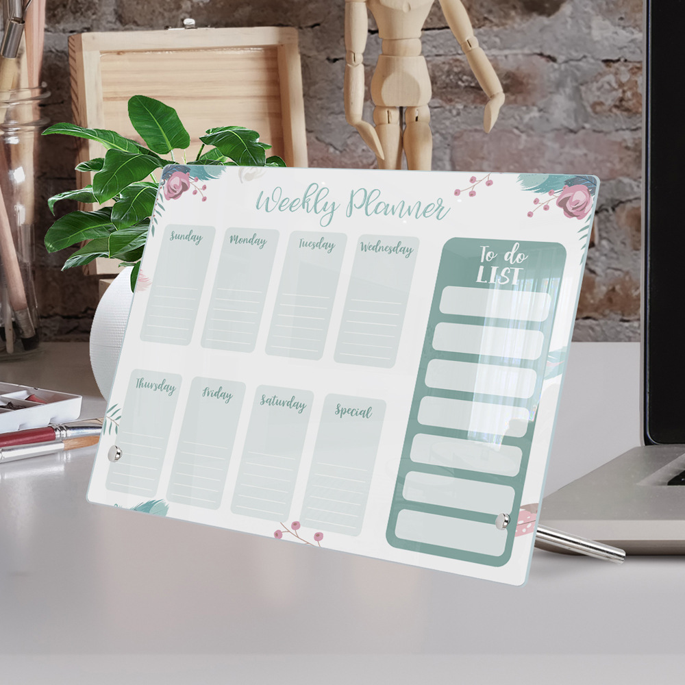 Tyu314アクリルデスクトップ週計画メモボードは透明な伝言ボードのメモを拭くことができます。