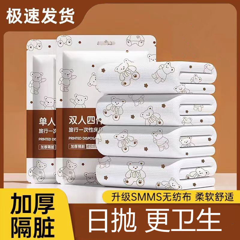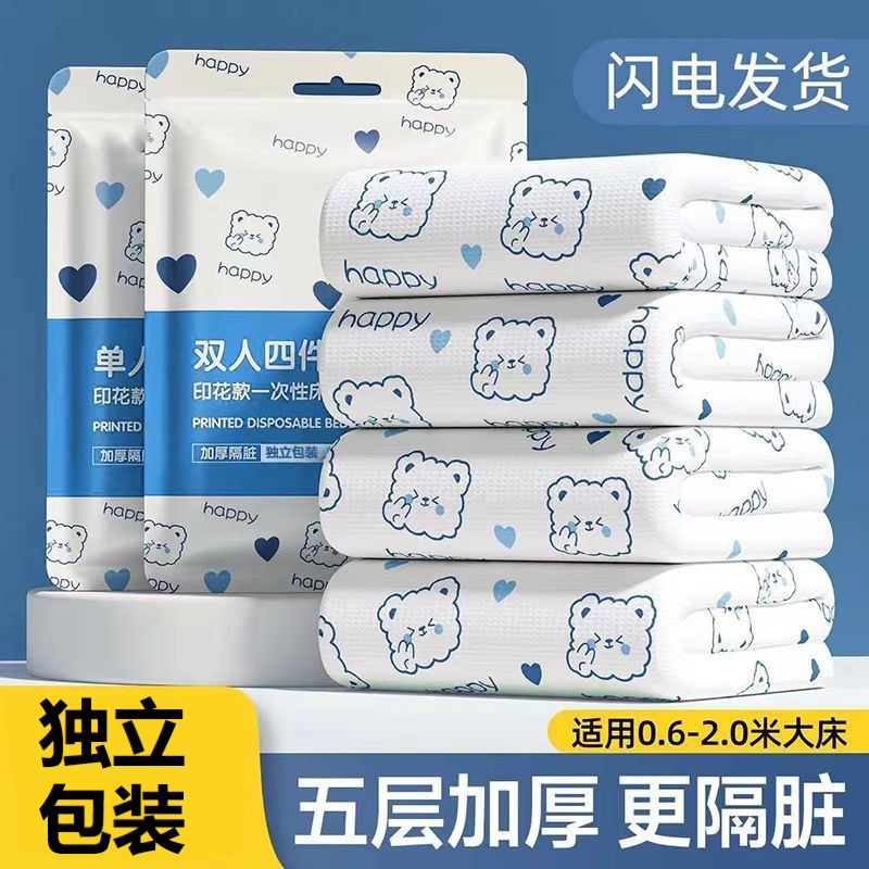ベッド笠使い捨てベッド4点セットシーツカバー枕カバー非純綿ベッド用品ベッドカバー旅行ホテル神器