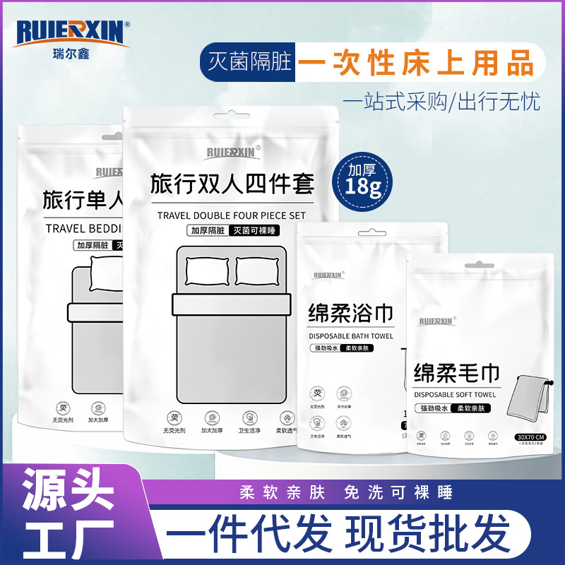 使い捨てシーツ旅行4点セット携帯ホテル用品使い捨てバスタオル汚れシーツカバーセット