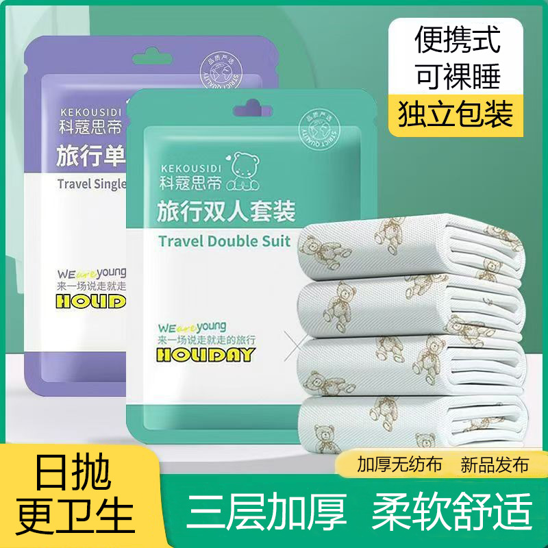 出張用使い捨てベッドシーツと掛け布団カバー、厚みのある隔膜の4点セット、旅行用の3点または4点セット、携帯用真空パック、洗濯不要