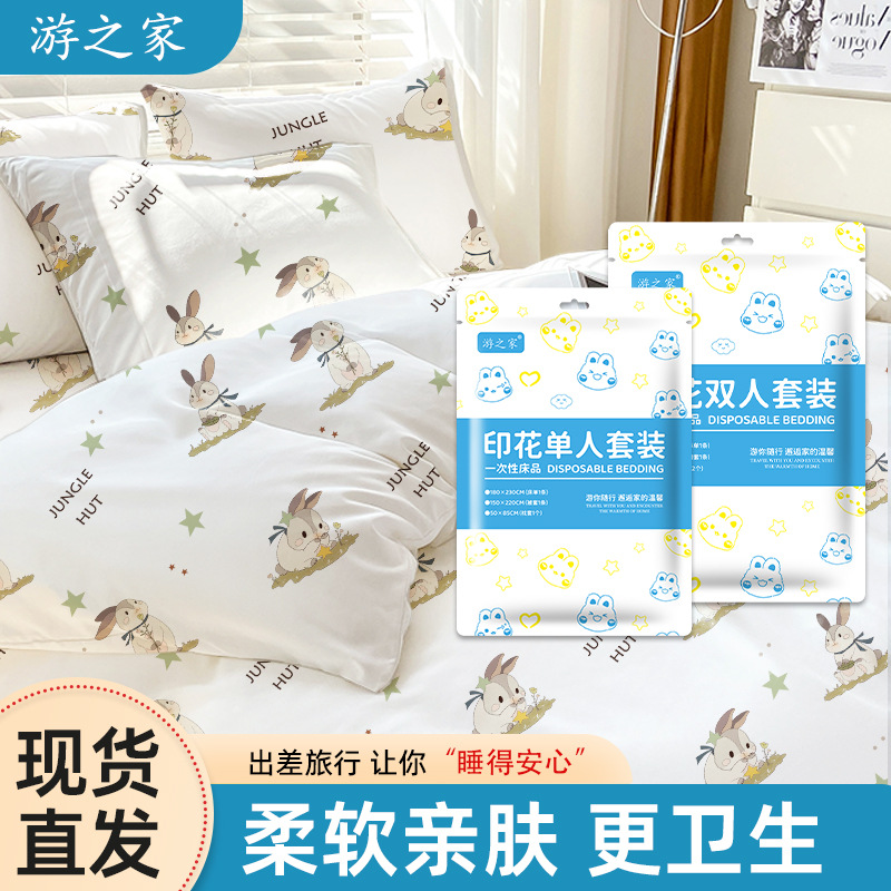 使い捨てシーツカバー枕カバープリント4点セットホテル旅行ベッド汚れ用品旅行携帯衛生