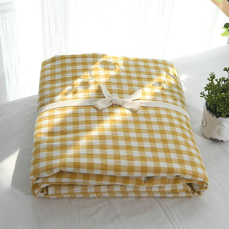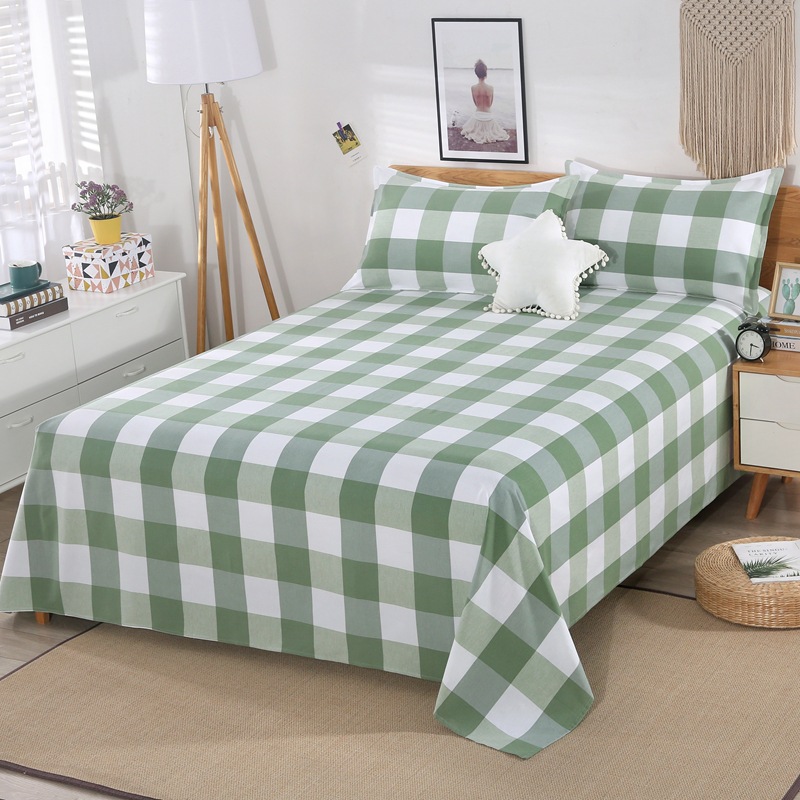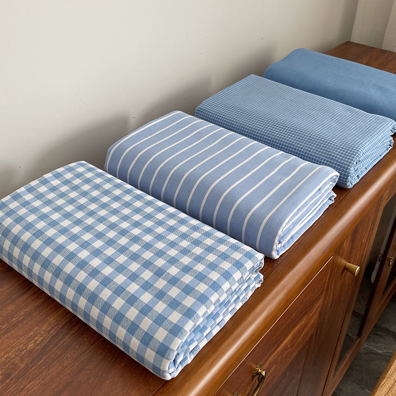 卸売イン綿洗浄綿シーツシングルピース学生寮綿 100 チェック柄シーツ枕カバー 3 点セットシングルベッド