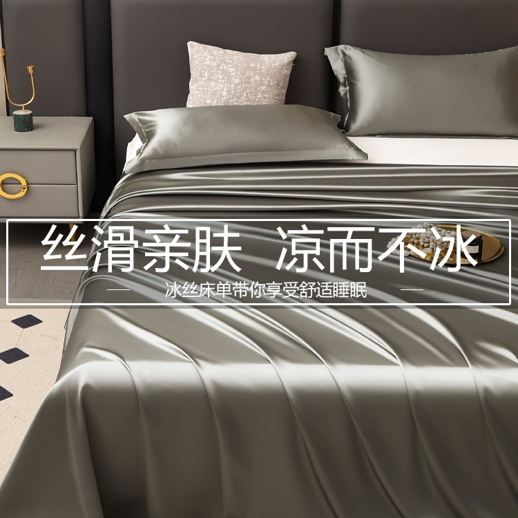 無地 シンプル アイスシルク ベッドシーツ シングル 夏 シルキー 裸寝 アイスシルク シーツ シルク枕カバー 3枚 c^