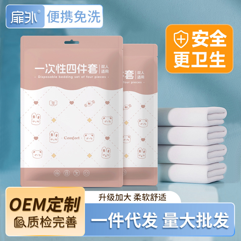 Of使い捨てシーツカバー枕カバーホテル4点セット旅行美容厚手大人純綿火剛逸