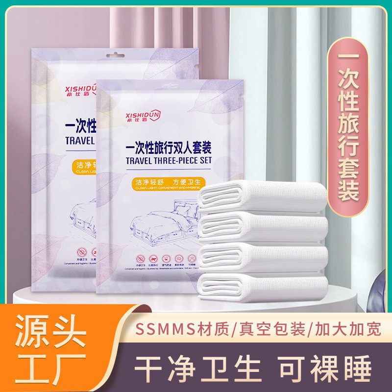 使い捨て三四点セット旅行出張携帯ホテル用品汚れシーツ布団カバー枕カバー二人セット