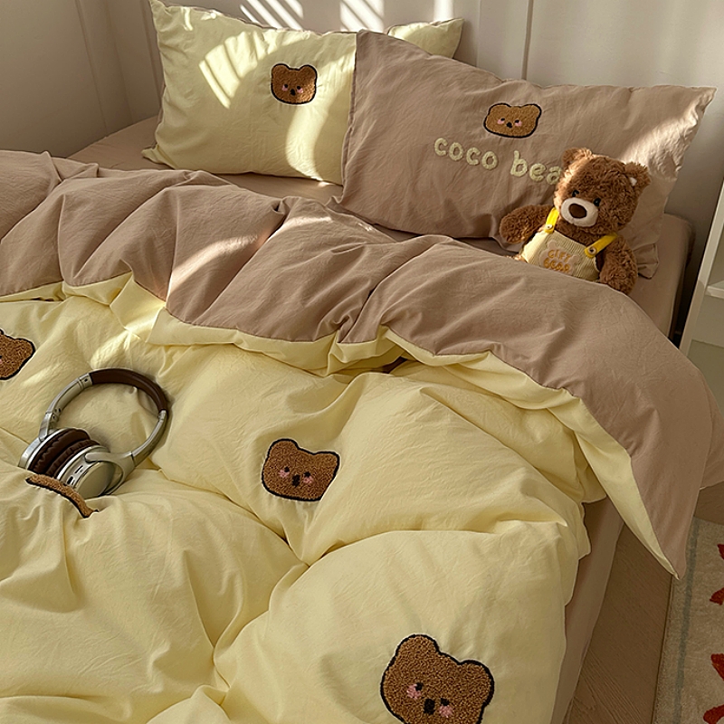 Ins漢式熊水洗綿四点セット学生寮ベッド三点セットいいえ純綿布団カバーシーツ4