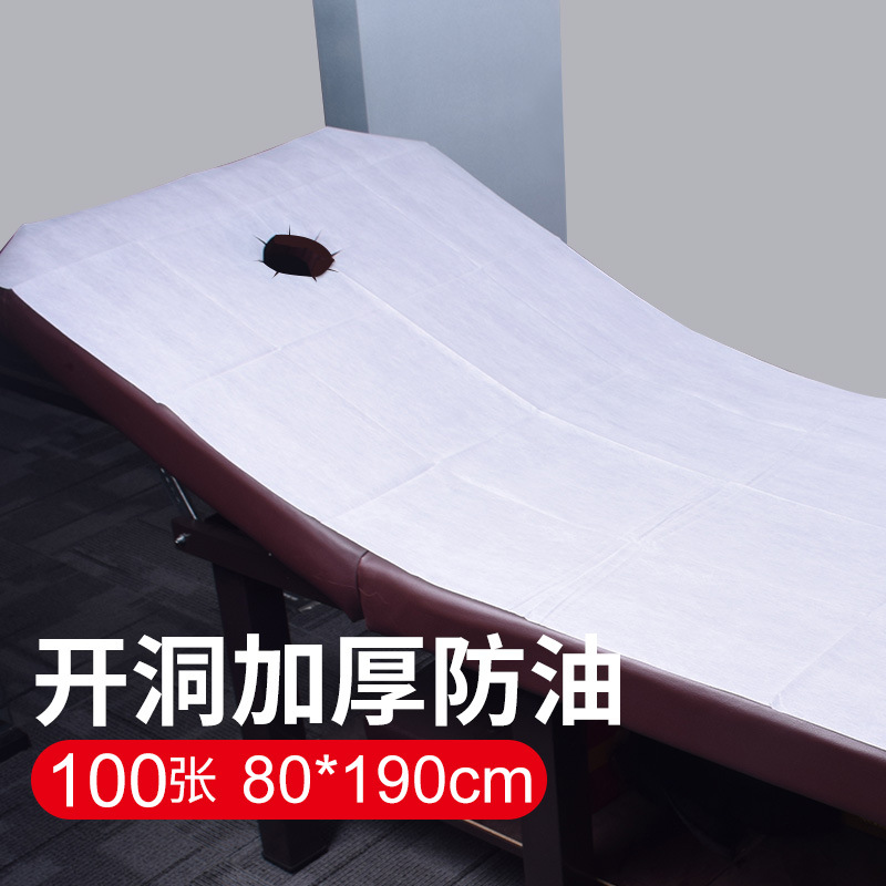 使い捨てシーツ美容院紡績布100枚通気防油美容ベッドマッサージベッドシーツ厚い穴付き