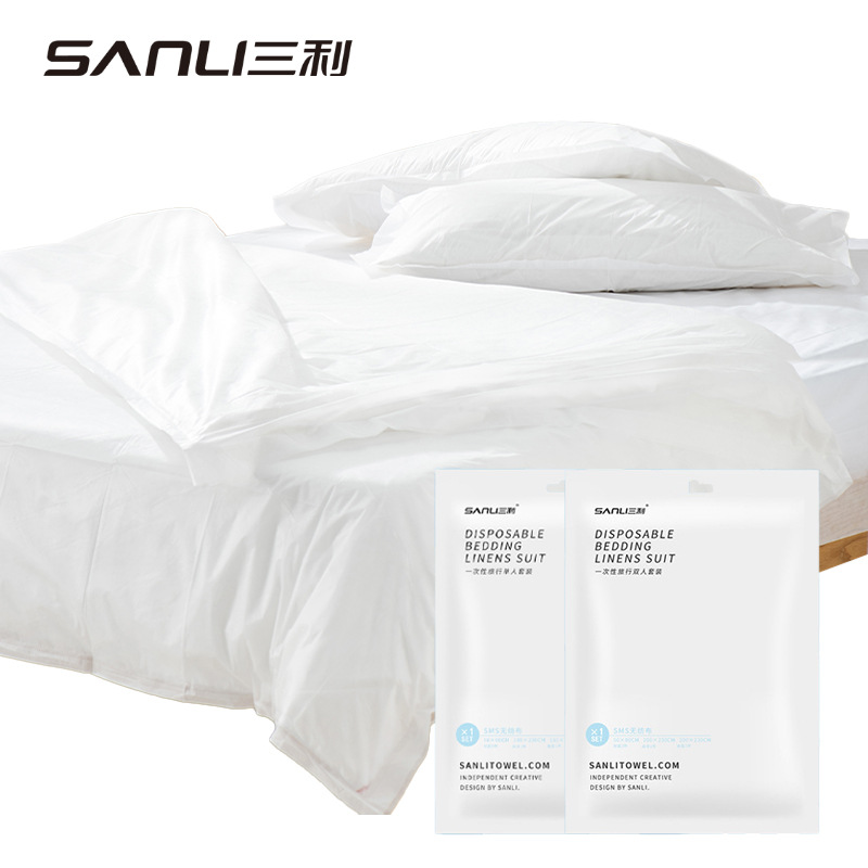 [使い捨てシーツ布団カバー枕カバー寝袋] 三利タオルベッド用品ホテル使い捨て旅行3点セット4点
