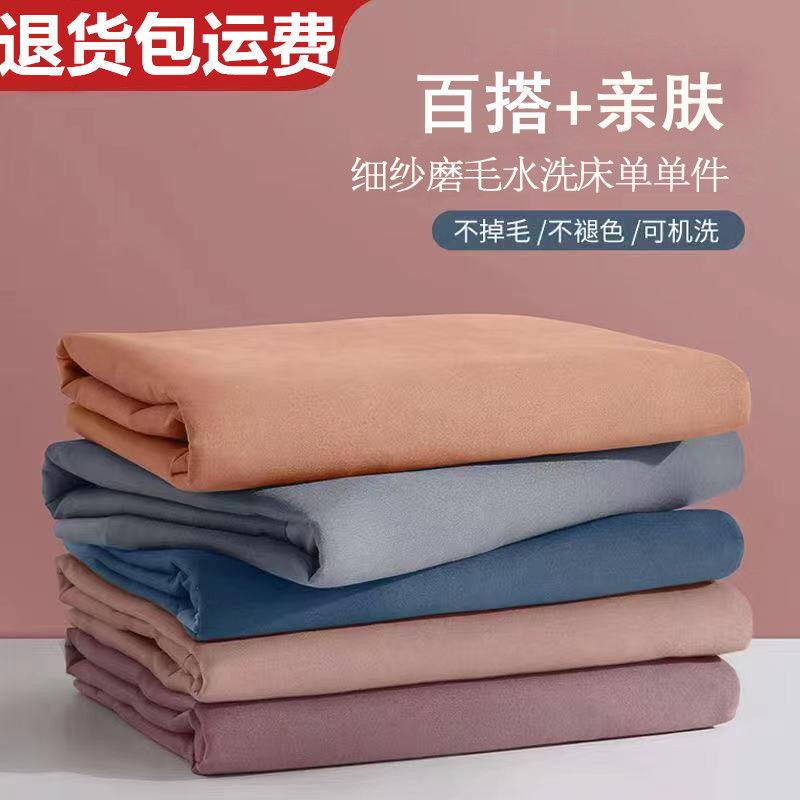 【工場直販】ins風無地ベッドシーツ単品 学生寮 シンプル 肌に優しい シングル・ダブル 起毛ベッドシーツ