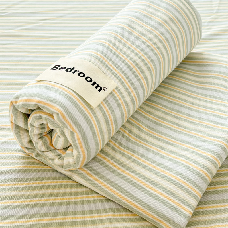 クラスA母子グレードの超ソフトウォッシュコットンベッドシーツシングルストライプチェック柄学生寮ベッドシーツ枕カバー3点セット
