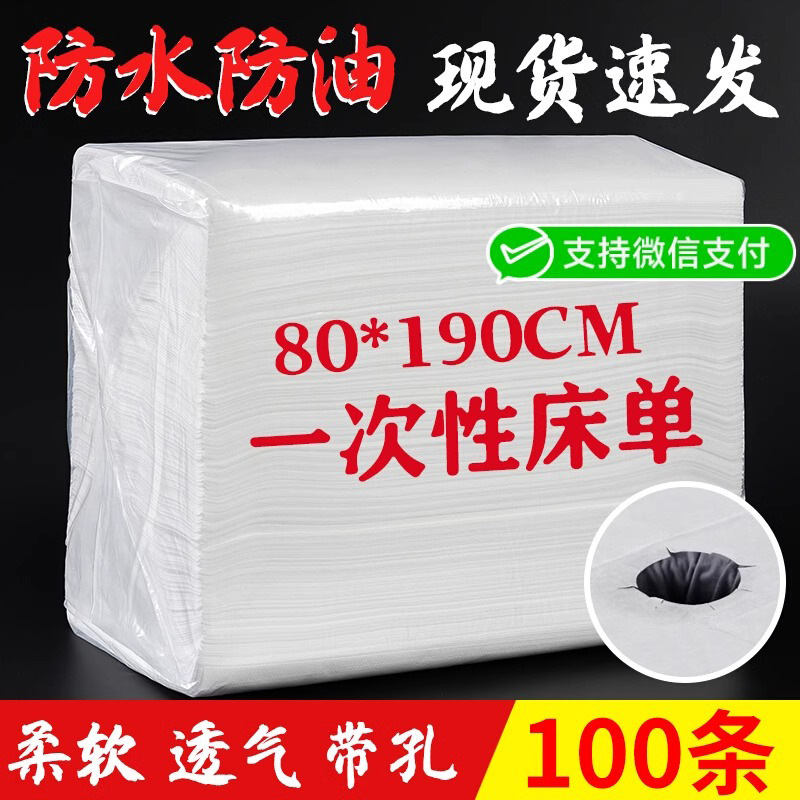 ビューティーサロン用使い捨てベッドシーツ100枚、厚みのある防水性と耐油性、穴付きマッサージ、通気性のある不織布、滅菌