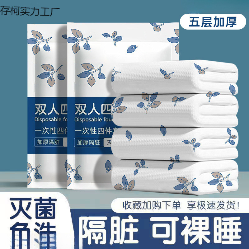 使い捨てベッドシーツ、掛け布団カバー、枕カバー、厚手の4点セット、ダブル旅行用ホテル寝具、携帯用