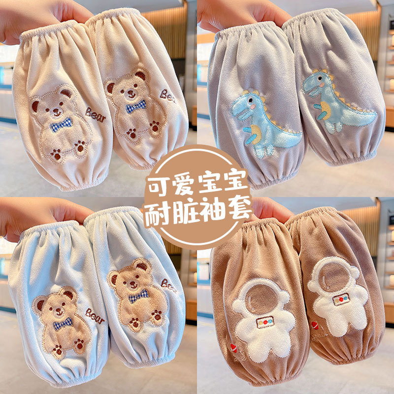 子供袖カバー秋冬新作防汚袖保温可愛い赤ちゃん袖A類アニメ刺繍汚れ防止カバー袖