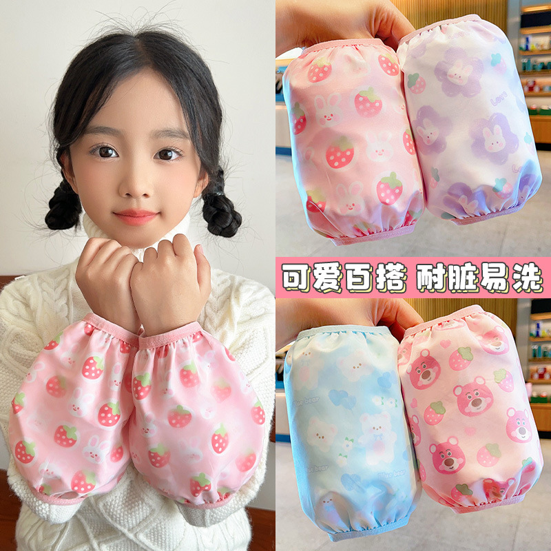 2025秋冬子供用袖カバー、防汚・防汚性・保温性、可愛い漫画柄、女の子用韓国風袖カバー