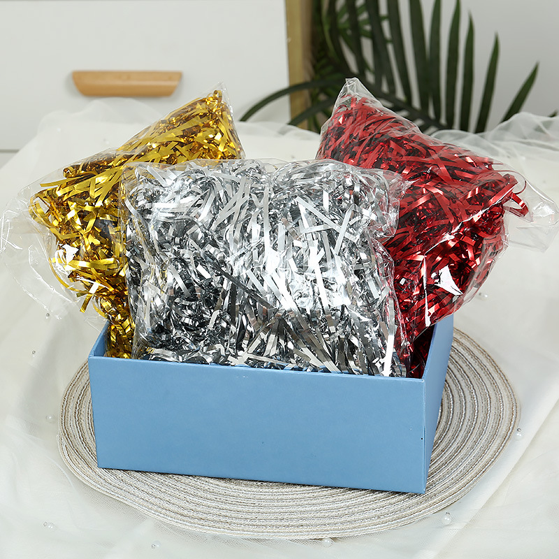 単一両面金属色のしわの草の紙の糸のメーカーの卸売りの100g 1斤のギフトボックスの喜糖の箱の詰め物