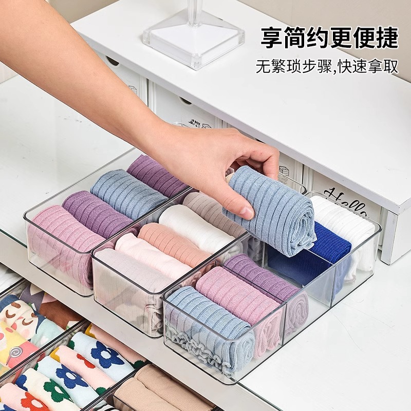 靴下収納ボックスデスクトップ透明雑貨文房具挟みケース小物長尺長方形引き出し仕切り収納