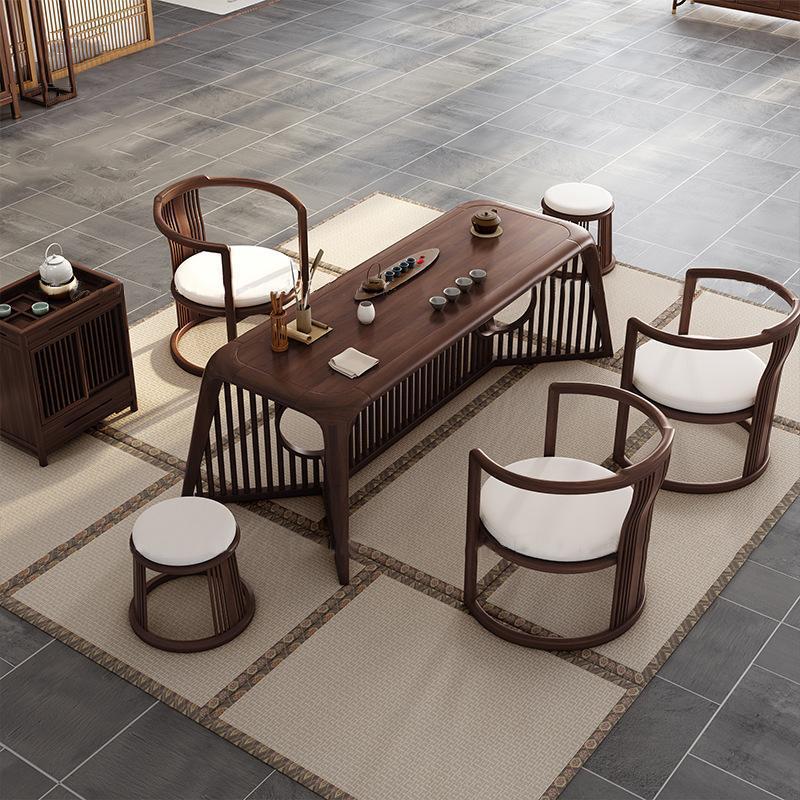 新しい中国風のライト高級ティーテーブルと椅子の組み合わせオフィスブラックウォールナット無垢材禅茶ティーテーブルカンフーティーテーブル