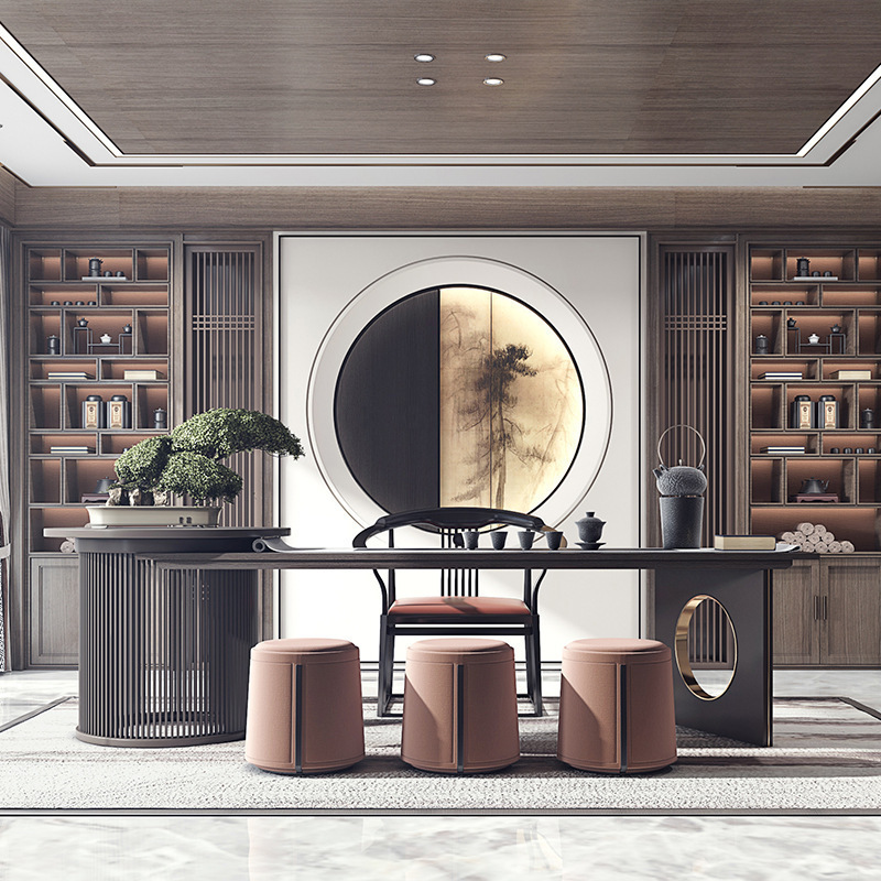 新しい中国風クラブカンフービッグボードティールームテーブルレセプション交渉ライト高級営業所ホテルロビー禅家具