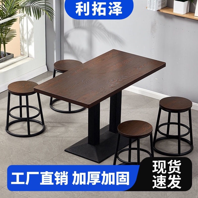 実木ファストフード店テーブルレストラン軽食飲食業務用長方形ホテルテーブル麺館ミルクティー店テーブル