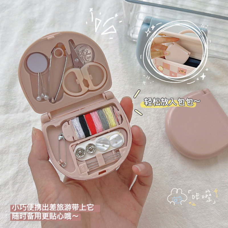 かわいいミニ裁縫箱多機能家庭用携帯セット学生寮多色手作り裁縫箱