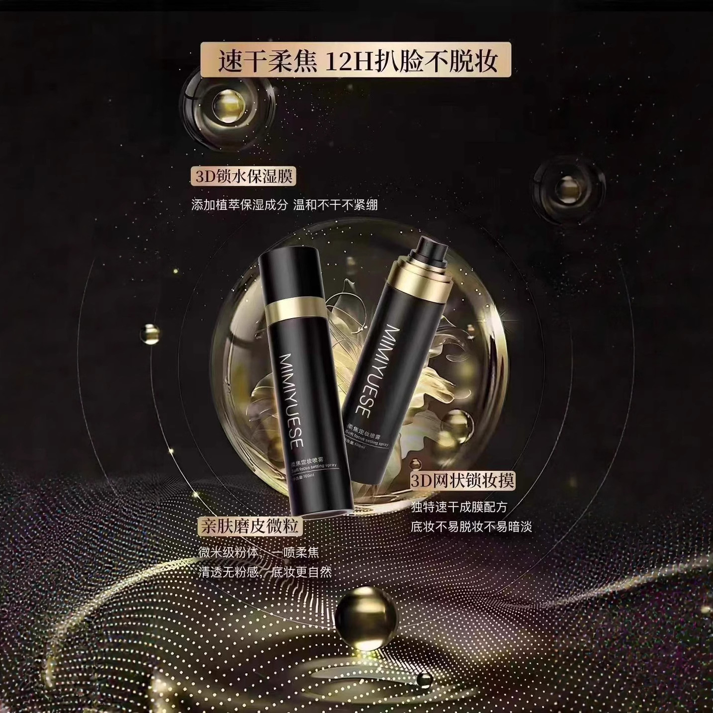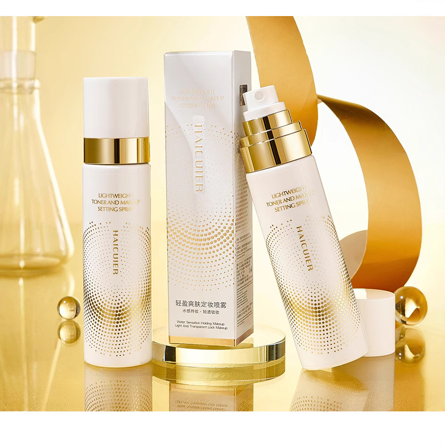 日本製金メッキメイクアップセッティングスプレー、長時間持続するオイルコントロール、保湿、メイク落ちしない、防水、乾燥肌、脂性肌、卸売可能