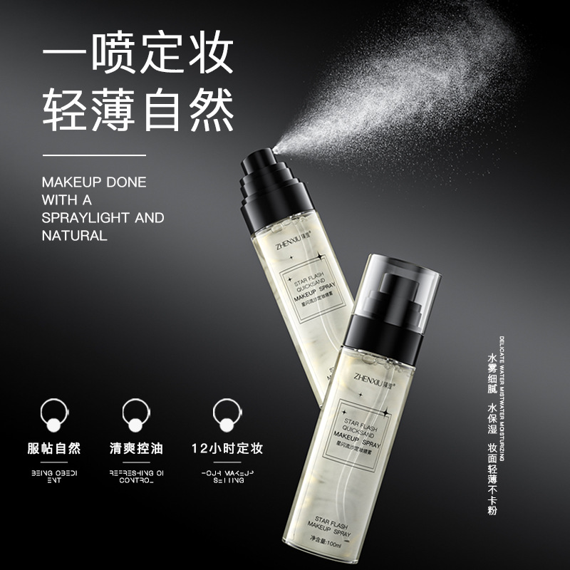 Zhensha Star Flash Quicksand メイクアップ セッティング スプレー メイクアップ セッティング ウォーター 保湿と水分補給 1 スプレーでフィルムを形成 オイル コントロール メイクアップの長持ち メイクアップの落下を防止