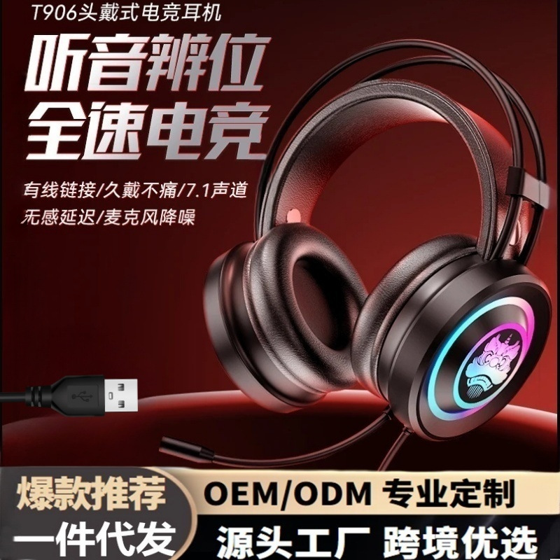 T906 e スポーツ ヘッドセット ヘッドセット有線 7.1 チャンネル ゲーミング ヘッドセット デスクトップ コンピューター有線マイク付き