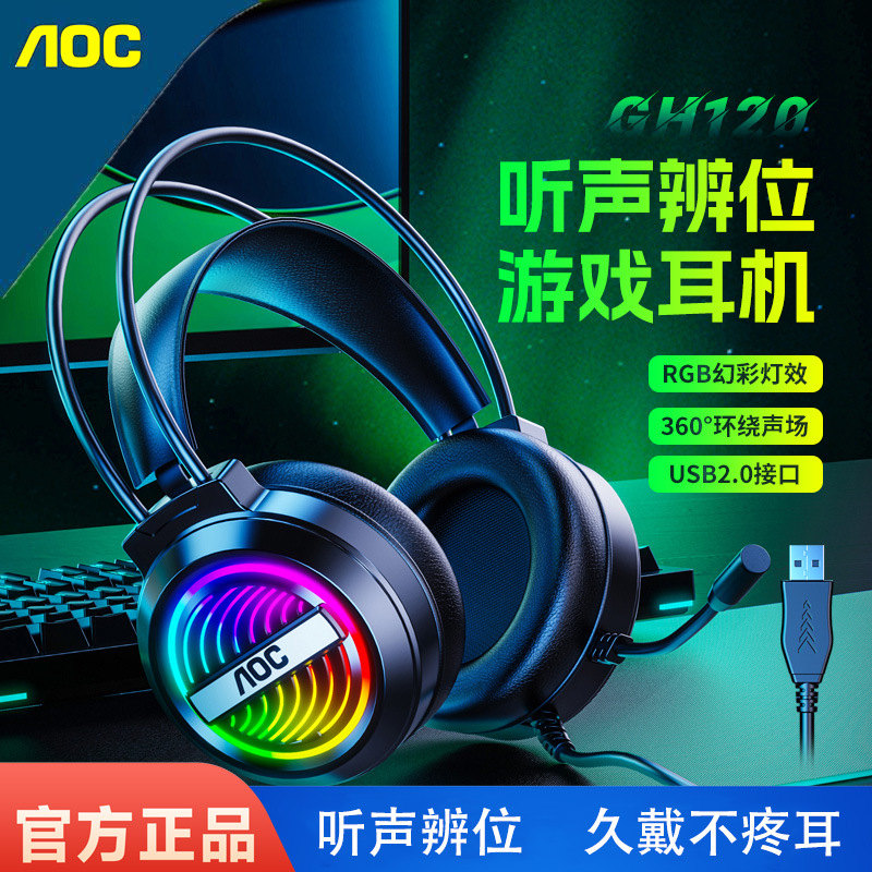 AOC GH120 コンピュータヘッドセット有線 USB ヘッドセット e スポーツゲームリスニング位置決めクロスボーダー卸売