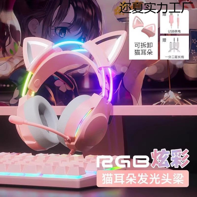 ヘッドセット有線新しい e スポーツ ゲーム マイク付きかわいい女の子のヘッドセット デスクトップ コンピューター ノートブック