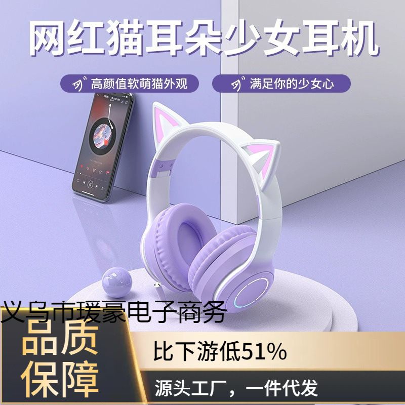 ヘッドマウント猫耳ヘッドフォンワイヤレス Bluetooth ヘッドセット女の子ゲームノイズリダクションコンピュータ子供用マイク付き高価値ピンク