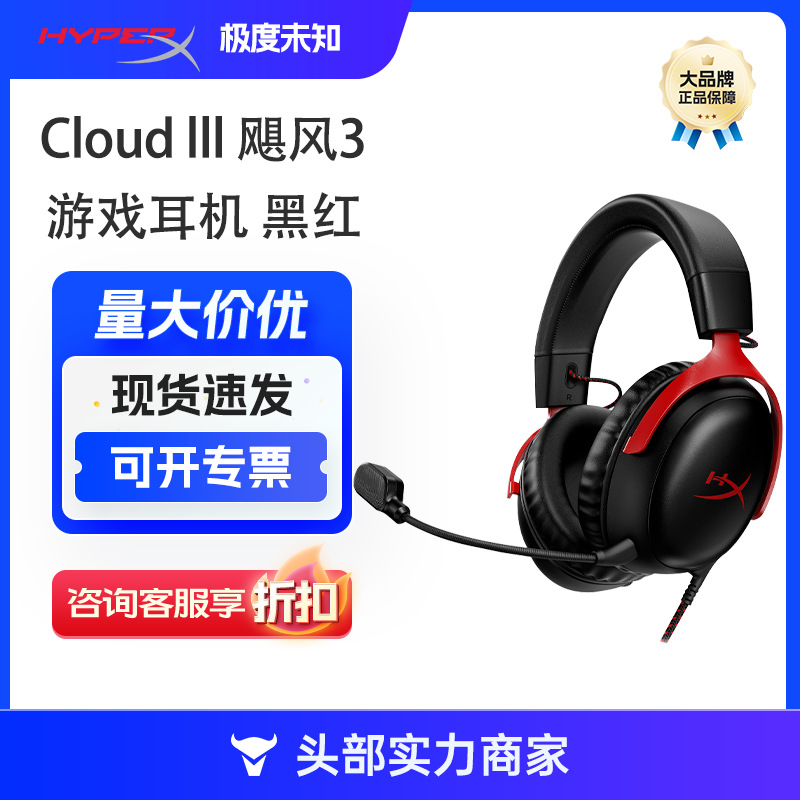 エクストリーム アンノウン (HYPERX) クラウドⅢ ハリケーン3 有線 ブラック レッド DTS サウンドエフェクト 53mm ドライブ シングル
