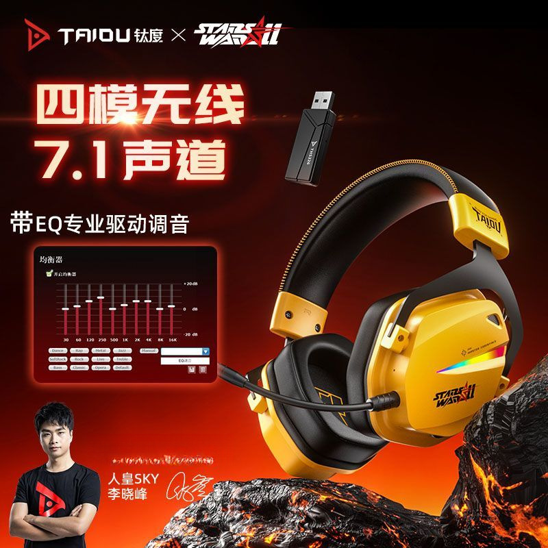 チタンアーマーワイヤレスゲーミングヘッドセットヘッドマウントオーバーイヤーBluetooth 2.4GゲーミングヘッドセットTHS3267.1